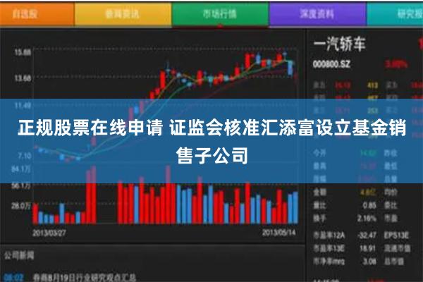 (原标题:证监会核准汇添富设立基金销售子公司)正规股票在线申请 6月14日,证监会核准汇添富基金管理股份有限公司设立汇添富基金销售有限公司,注册地为上海市,注册资本为5000万元人民币,业务范围为证券投资基金销售。 本文源自:金融界 作者:......