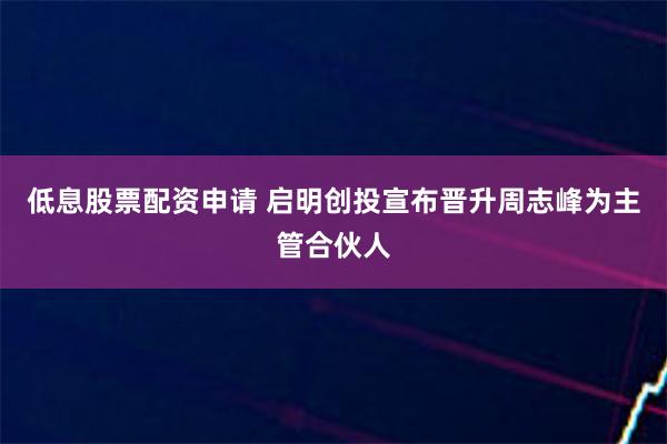 启明创投今日宣布,晋升合伙人周志峰为主管合伙人。周志峰于2014年加入启明创投,作为启明创投培养的主管合伙人,其已经成为前沿科技领域特别是人工智能领域最活跃的投资人之一。周志峰将与启明创投另外三位主管合伙人邝子平、梁颕宇、胡旭波一起共同管理......