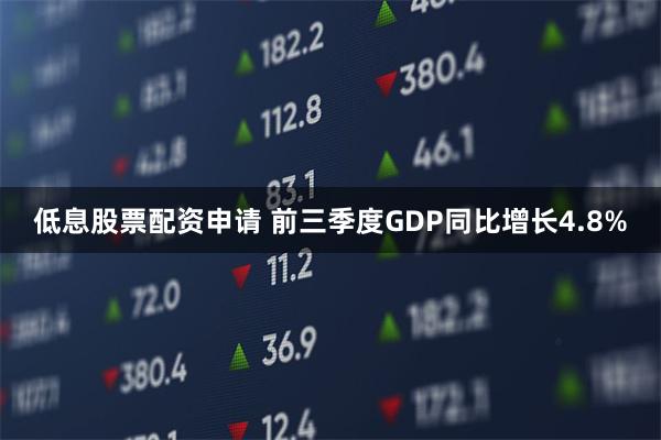 国家统计局10月18日发布数据显示,前三季度国内生产总值949746亿元,按不变价格计算,同比增长4.8%。分季度看,一季度国内生产总值同比增长5.3%低息股票配资申请,二季度增长4.7%,三季度增长4.6%。从环比看,三季度国内生产总值增......